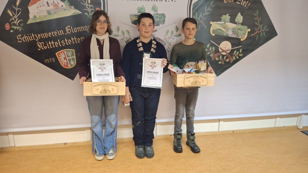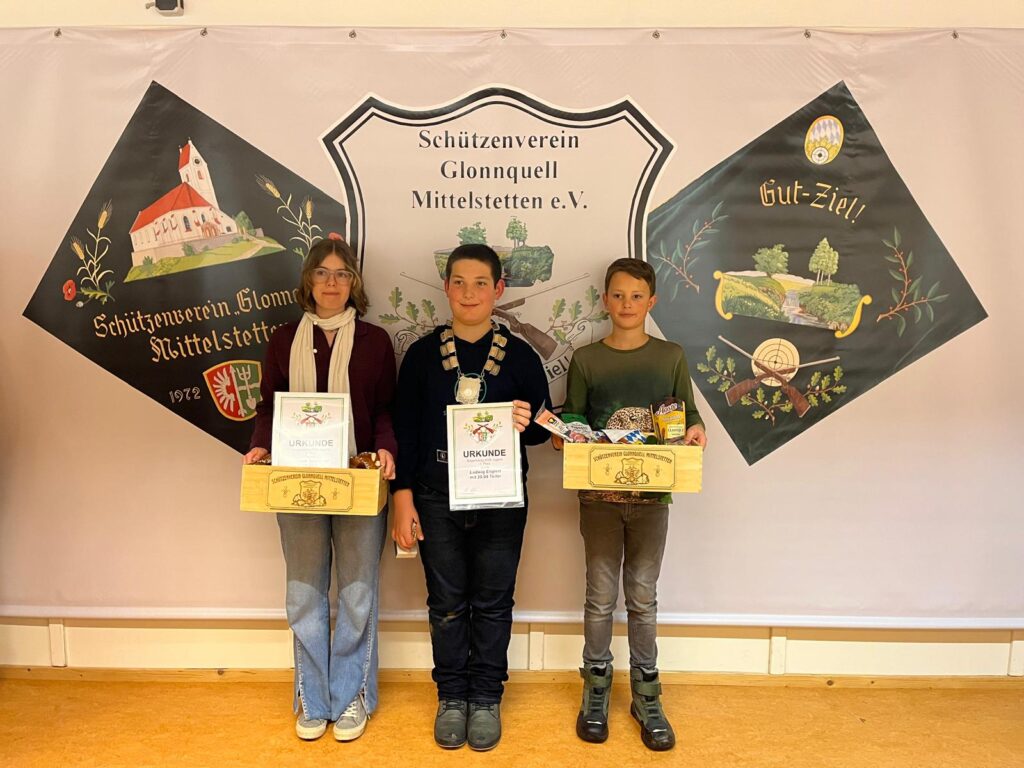 Jugendkönig bei den Bogenschützen wurde Ludwig Englert mit einem 20,04 Teiler, Zweitplatzierter wurde Quirin Räthel mit einem 44,51 Teiler und Drittplatzierter wurde Miriam Spannagl mit einem 69,67 Teiler.