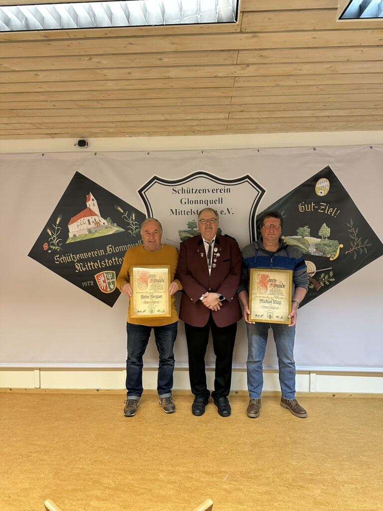 Deswegen nochmals vielen Dank für Euer jahrelanges Engagement für die Glonnquell Schützen und herzlichen Glückwunsch zur Ehrenmitgliedchaft.